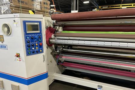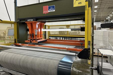 12" Perkins Press. 45 ton. Dual Unwinds.